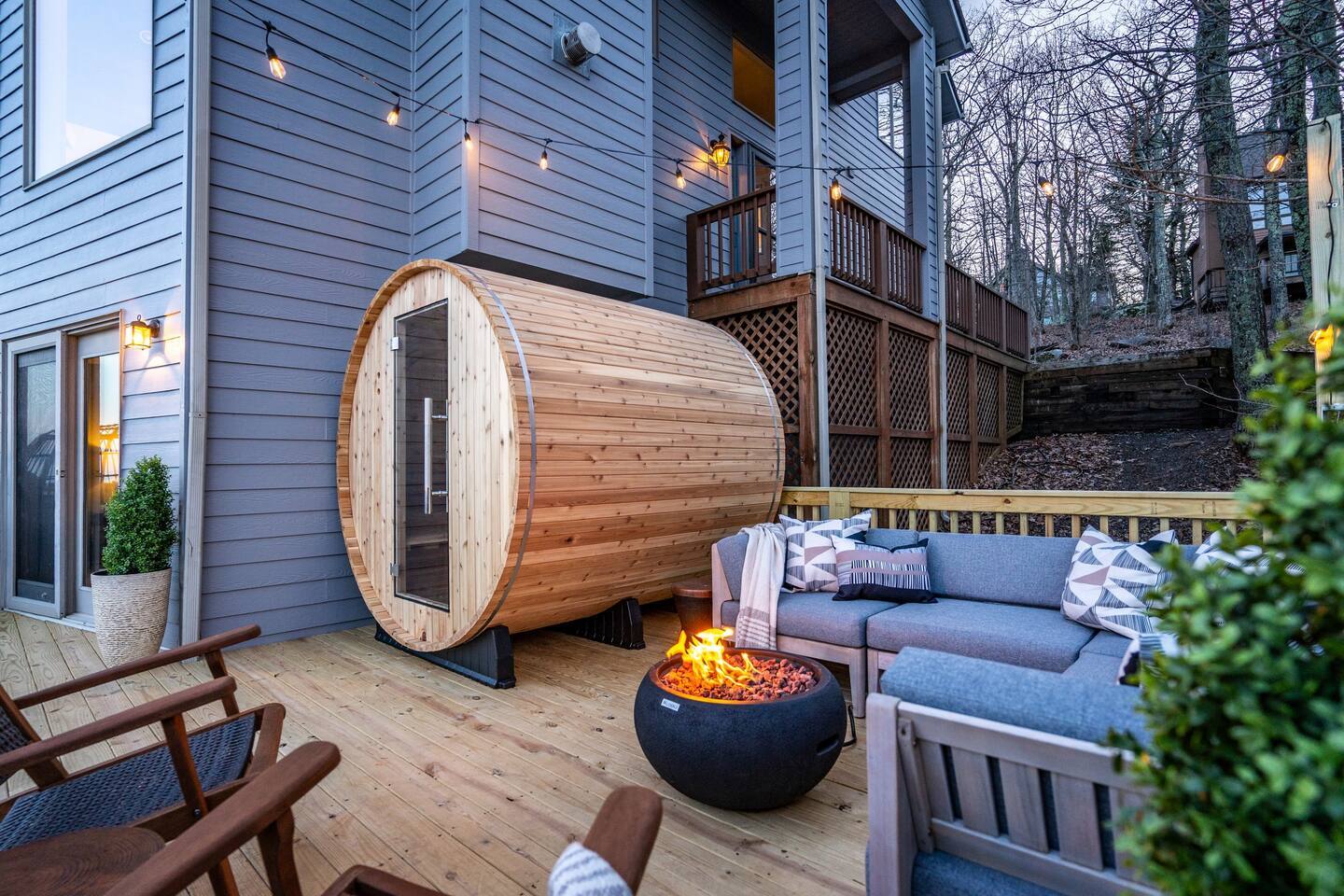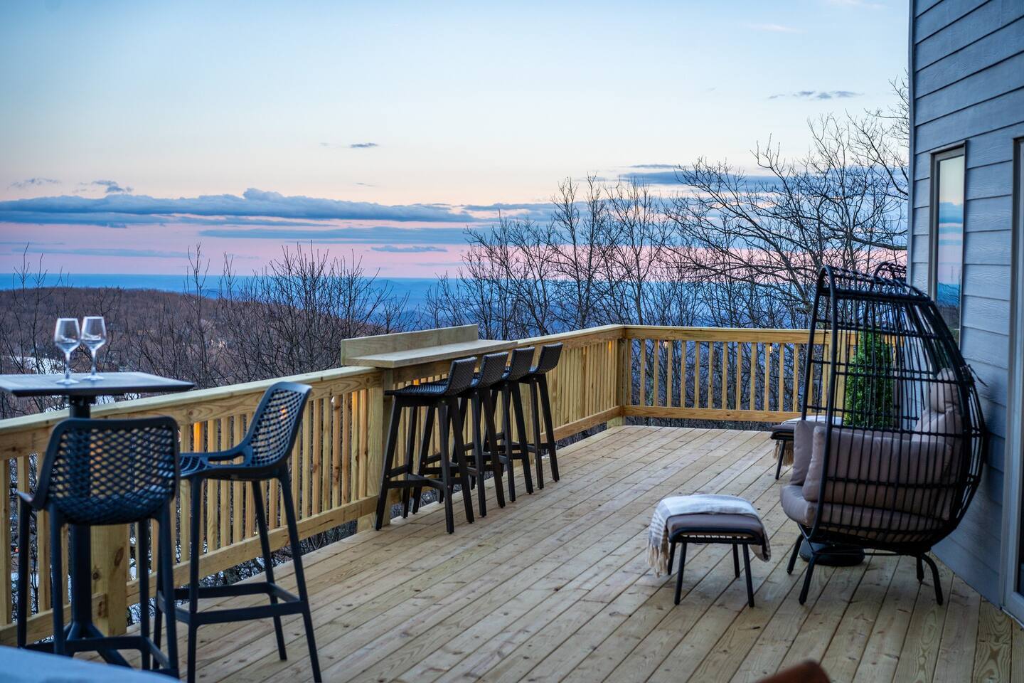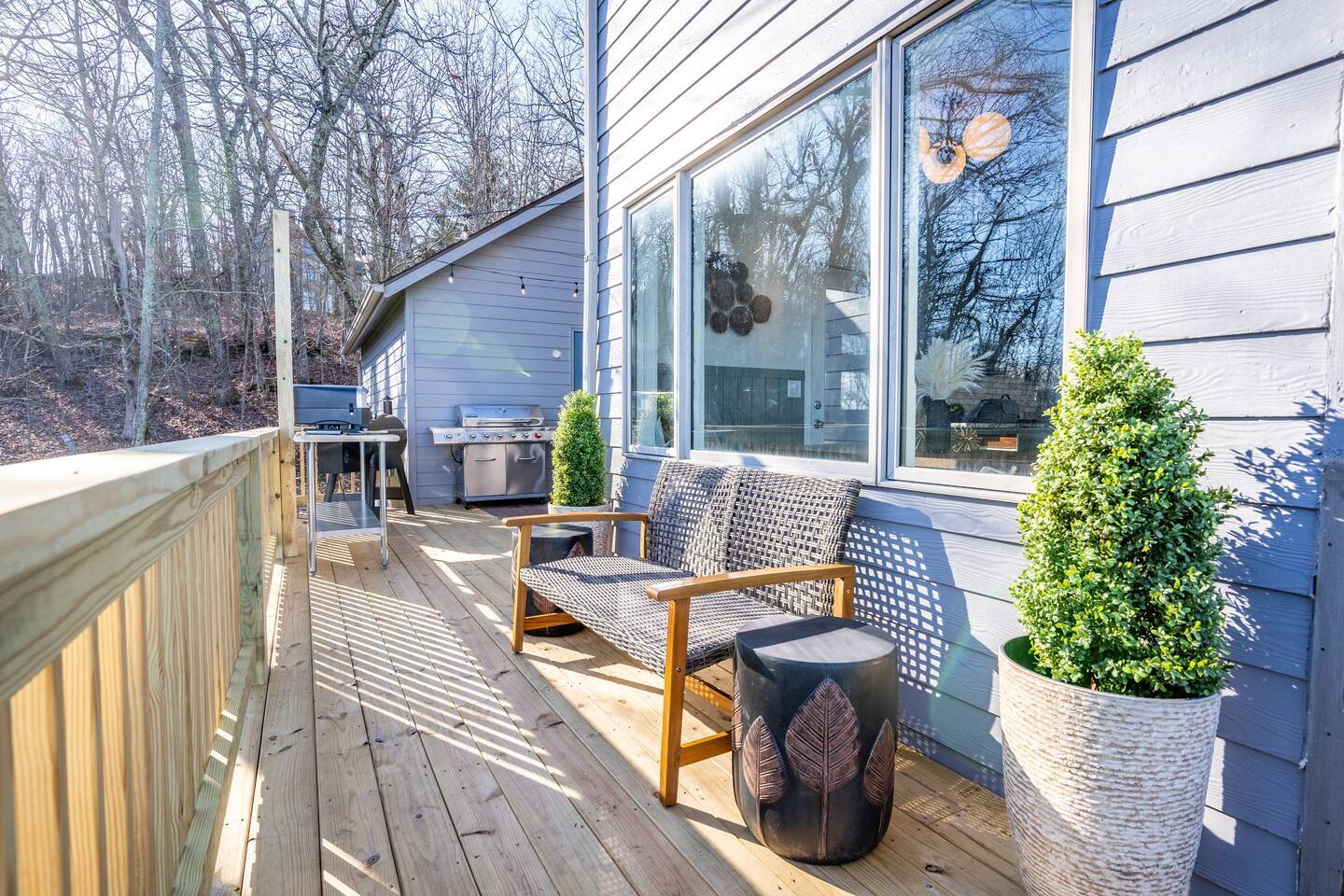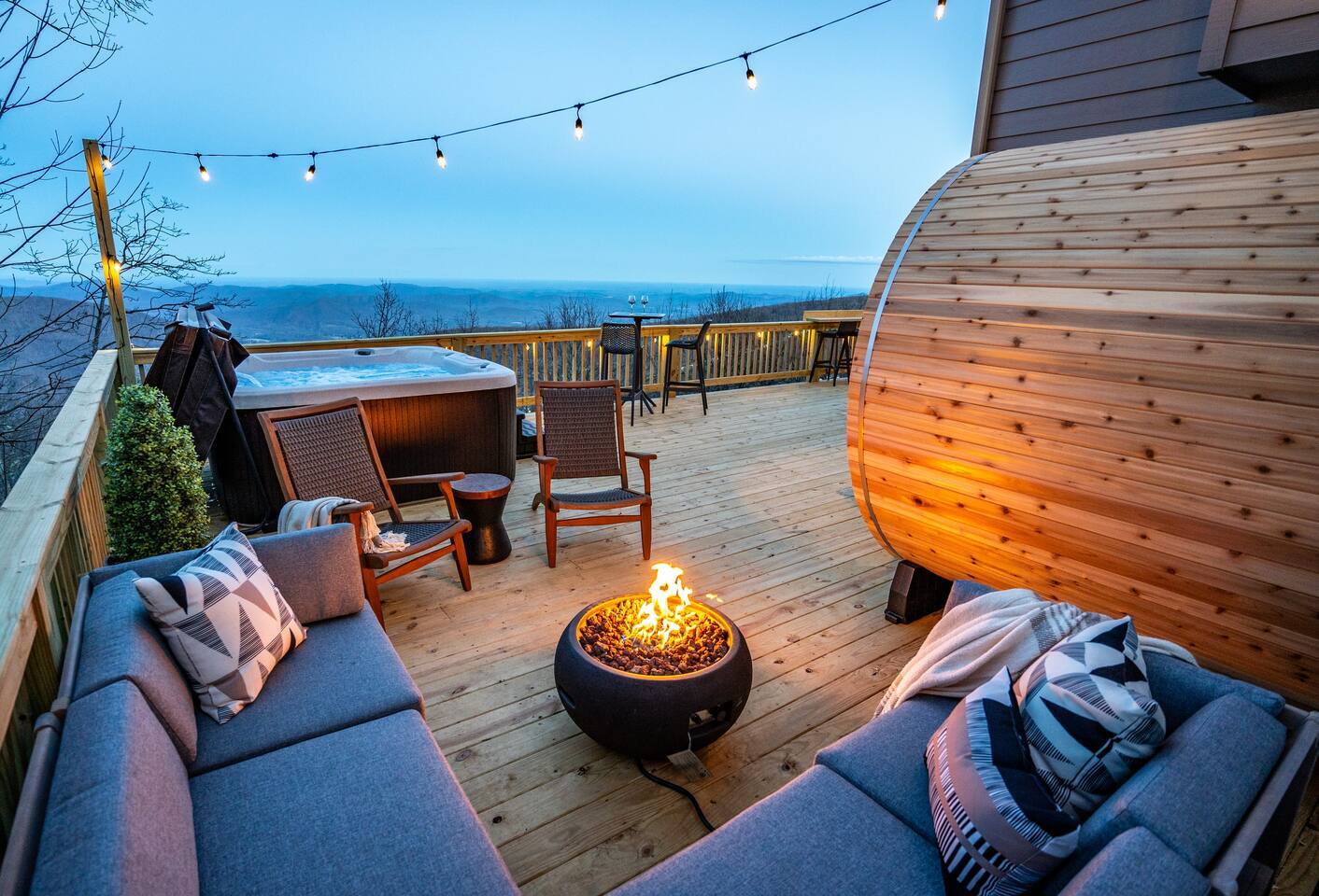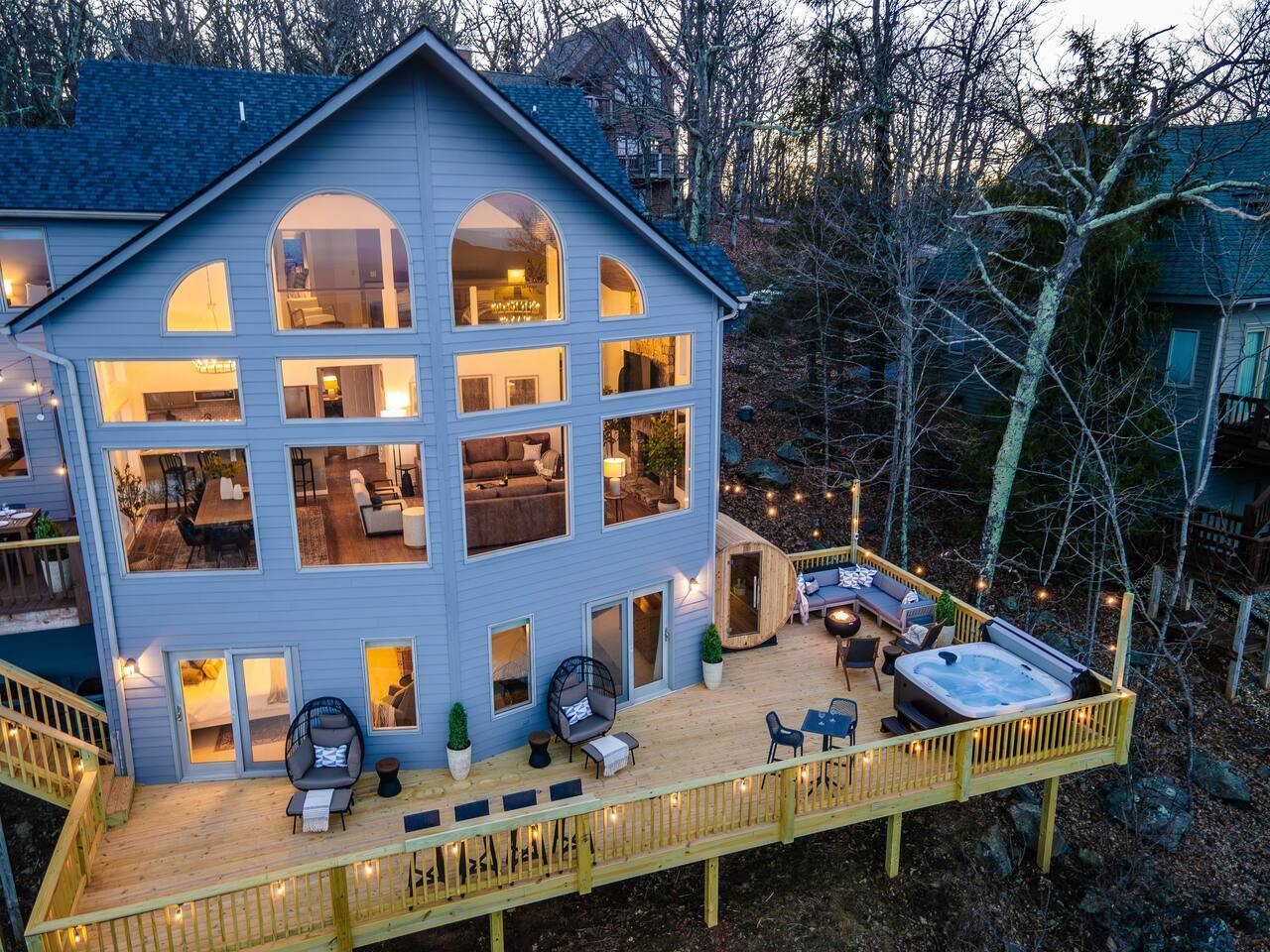Welcome to Highlands Overlook, a designer-decorated home in the heart of Wintergreen. The deck is second-to-none, complete with hot tub, cedar barrel sauna, fire table, dining for 10, grill, smoker, pizza oven, and views everywhere. The light-drenched interior is equally impressive. With 6 bedrooms plus a private game room with pullout sofa, the home sleeps 16 comfortably. Plus, pet friendly! Managed by Chris at New School Hosting- click on his profile below to see more reviews.